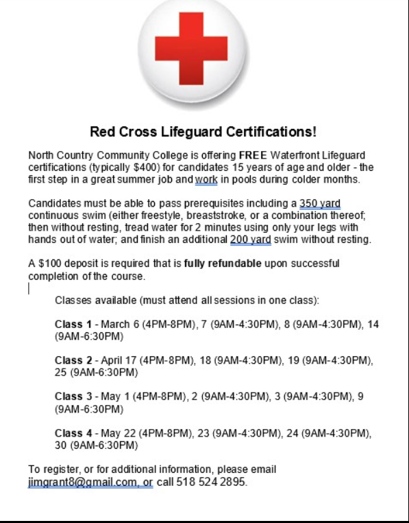 FREE NCCC Red Cross Lifeguard Certification Classes