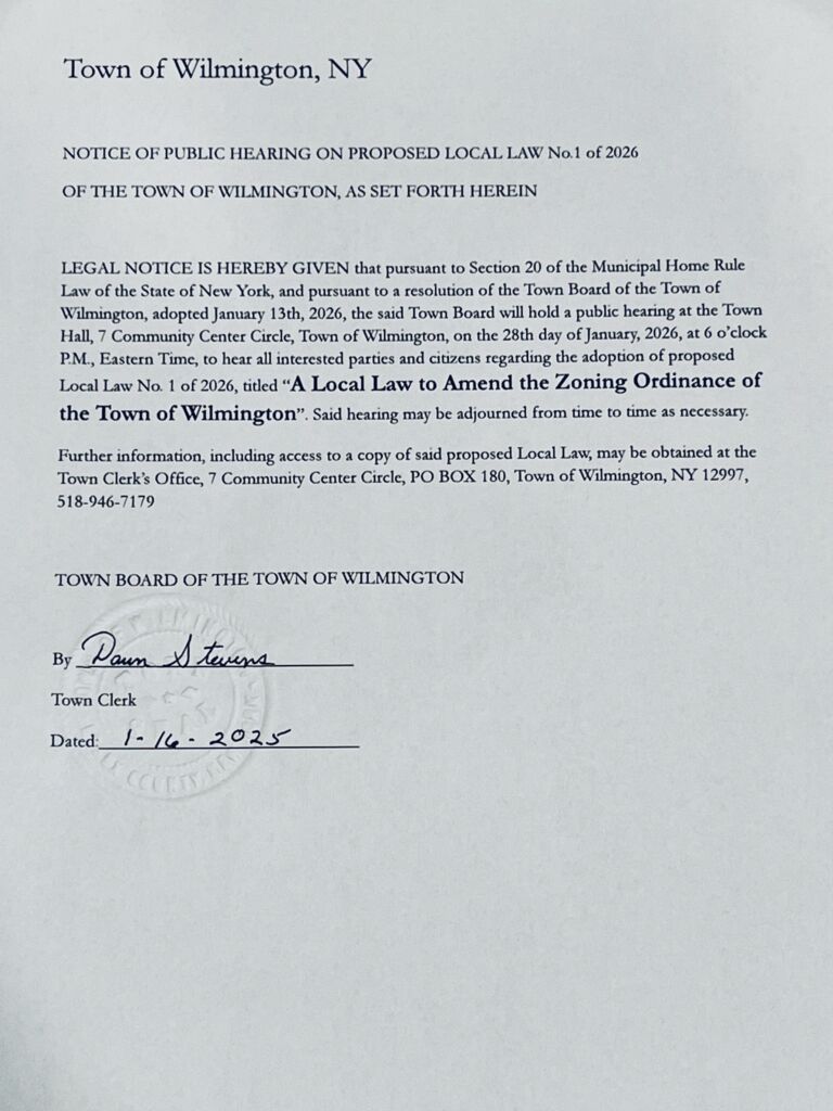 3. NOTICE OF PUBLIC HEARING ON PROPOSED LOCAL LAW No.1 of 2026