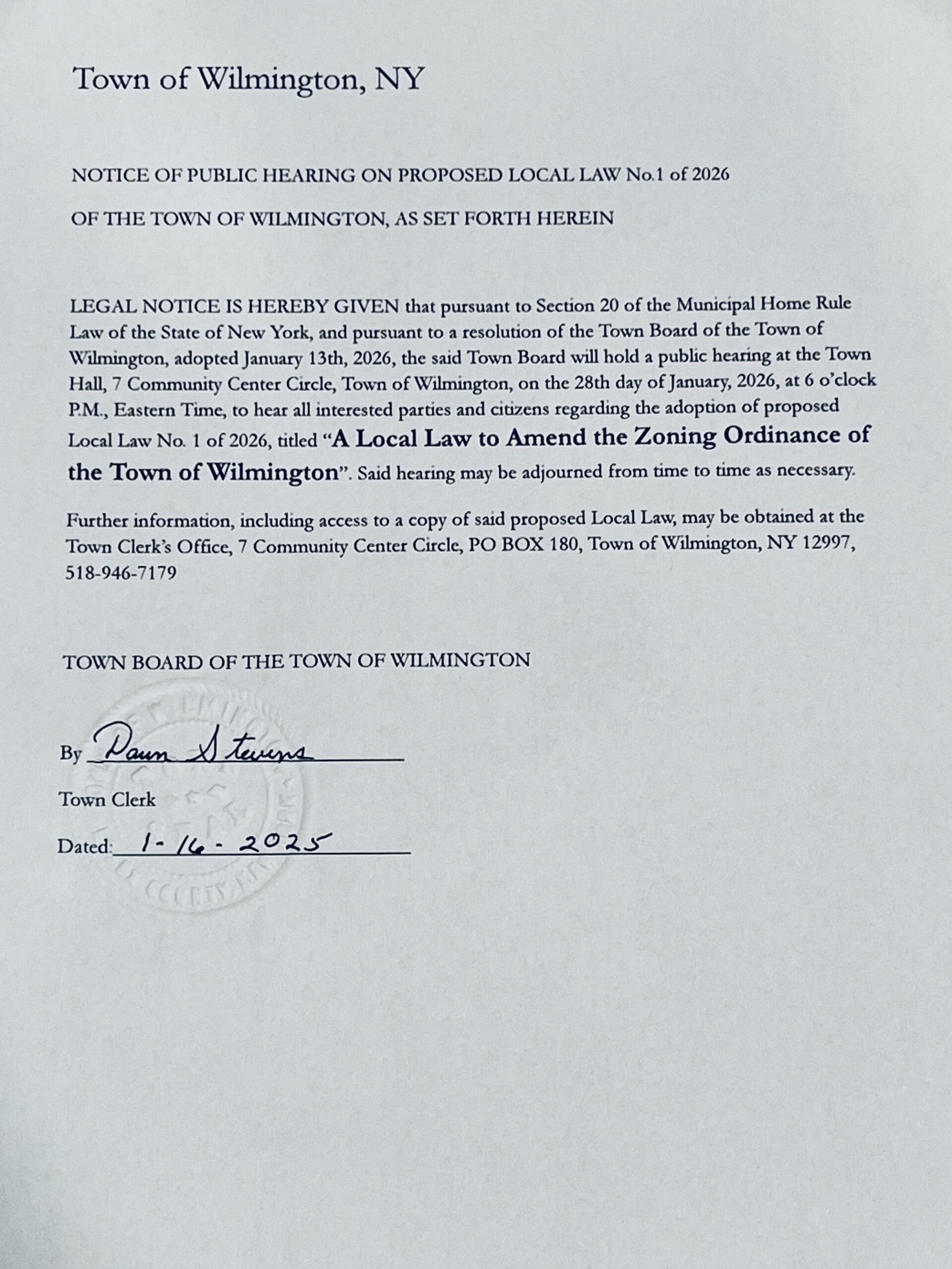 NOTICE OF PUBLIC HEARING ON PROPOSED LOCAL LAW No.1 of 2026