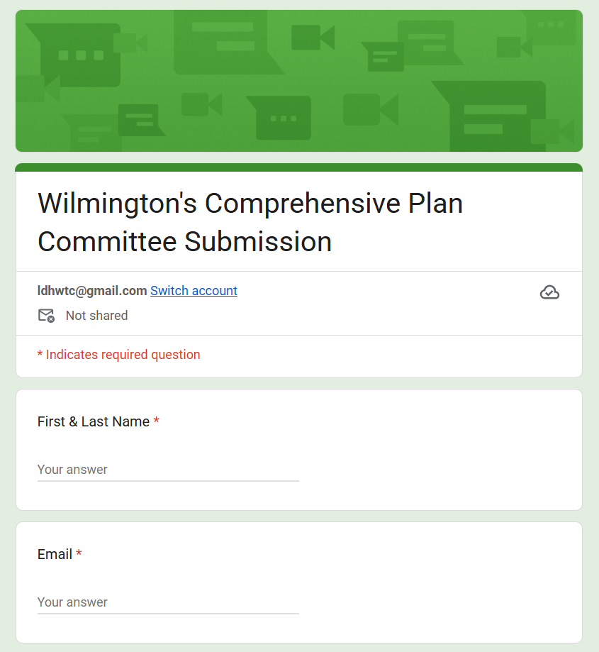 Wilmington’s Comprehensive Plan Committee Submission FORM